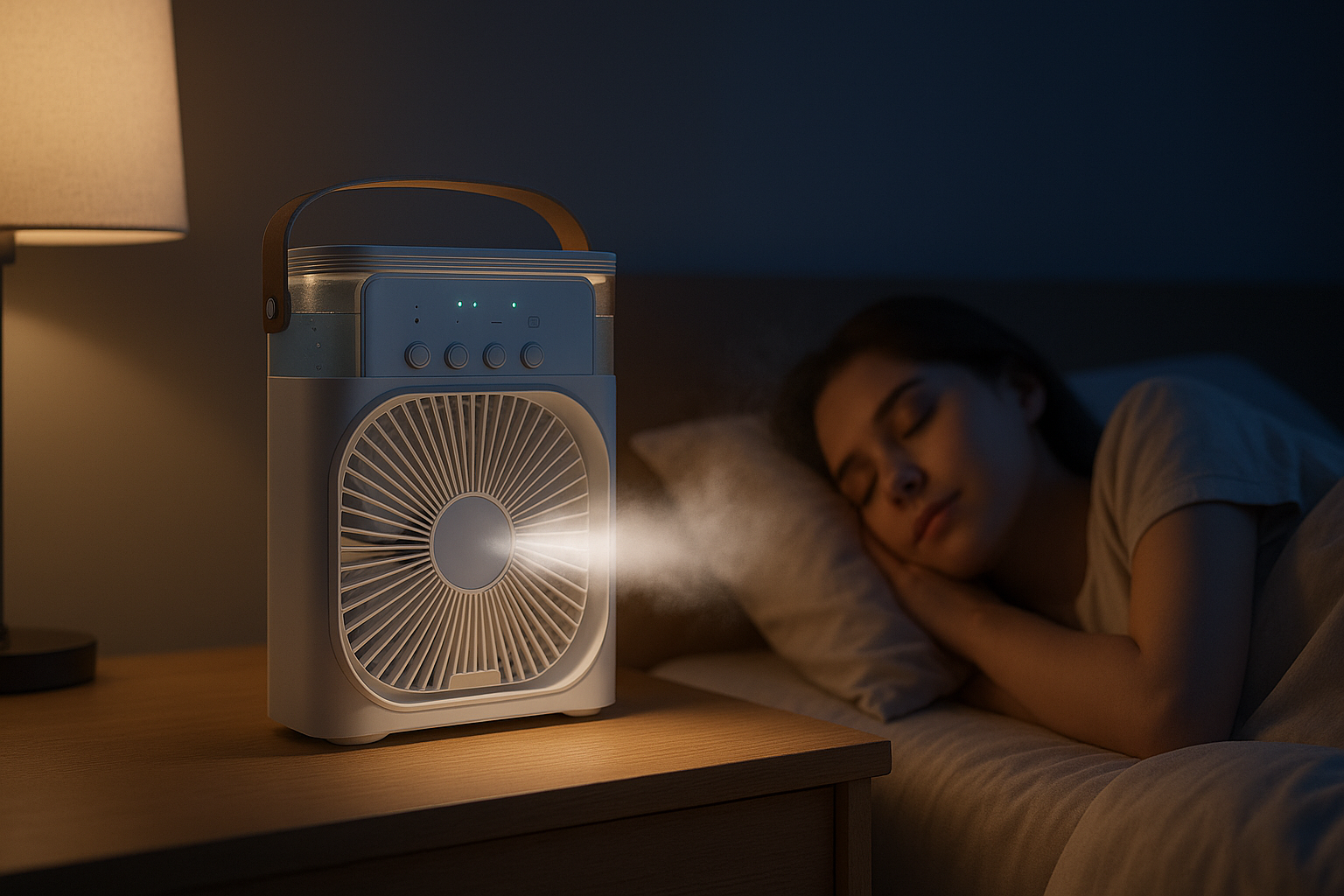 Air Cooler 3 en 1: Ventilador, humidificador y difusor de aroma todo en uno. Su depósito de 600 ml y funciones inteligentes lo hacen ideal para el hogar, la oficina o al aire libre. Disfruta de aire fresco, ambiente húmedo y aromatizado durante todo el día y noche.
